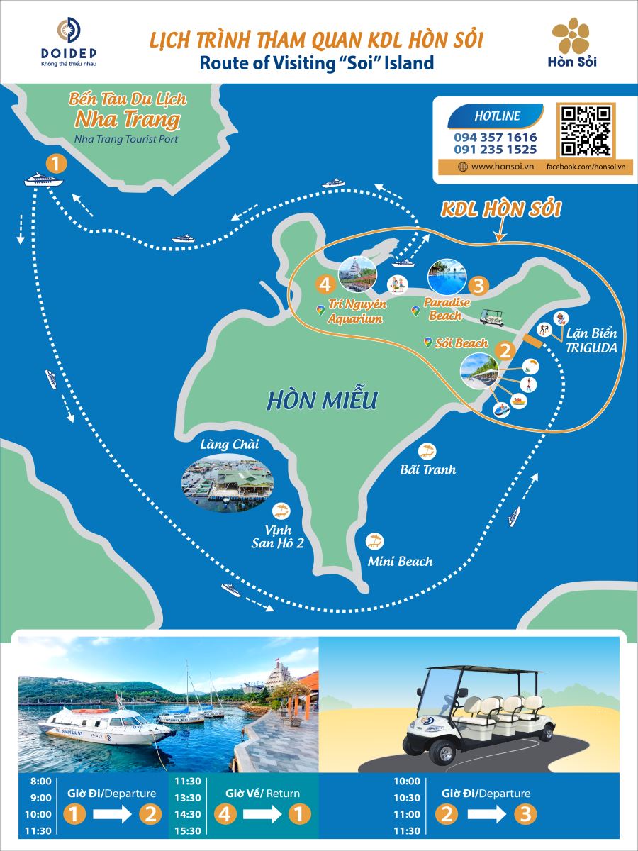 Cano đón tiễn Bến tàu du lịch Nha Trang – Khu du lịch Trí Nguyên – Bến tàu du lịch Nha Trang