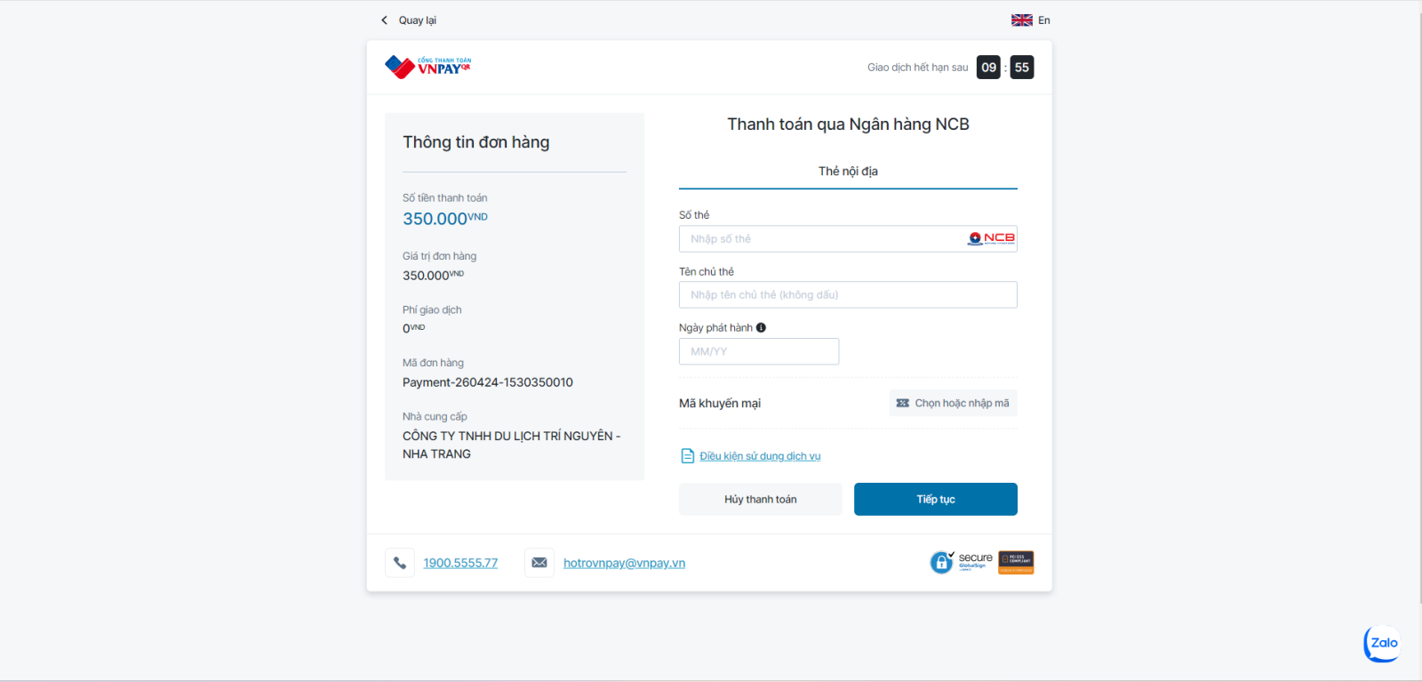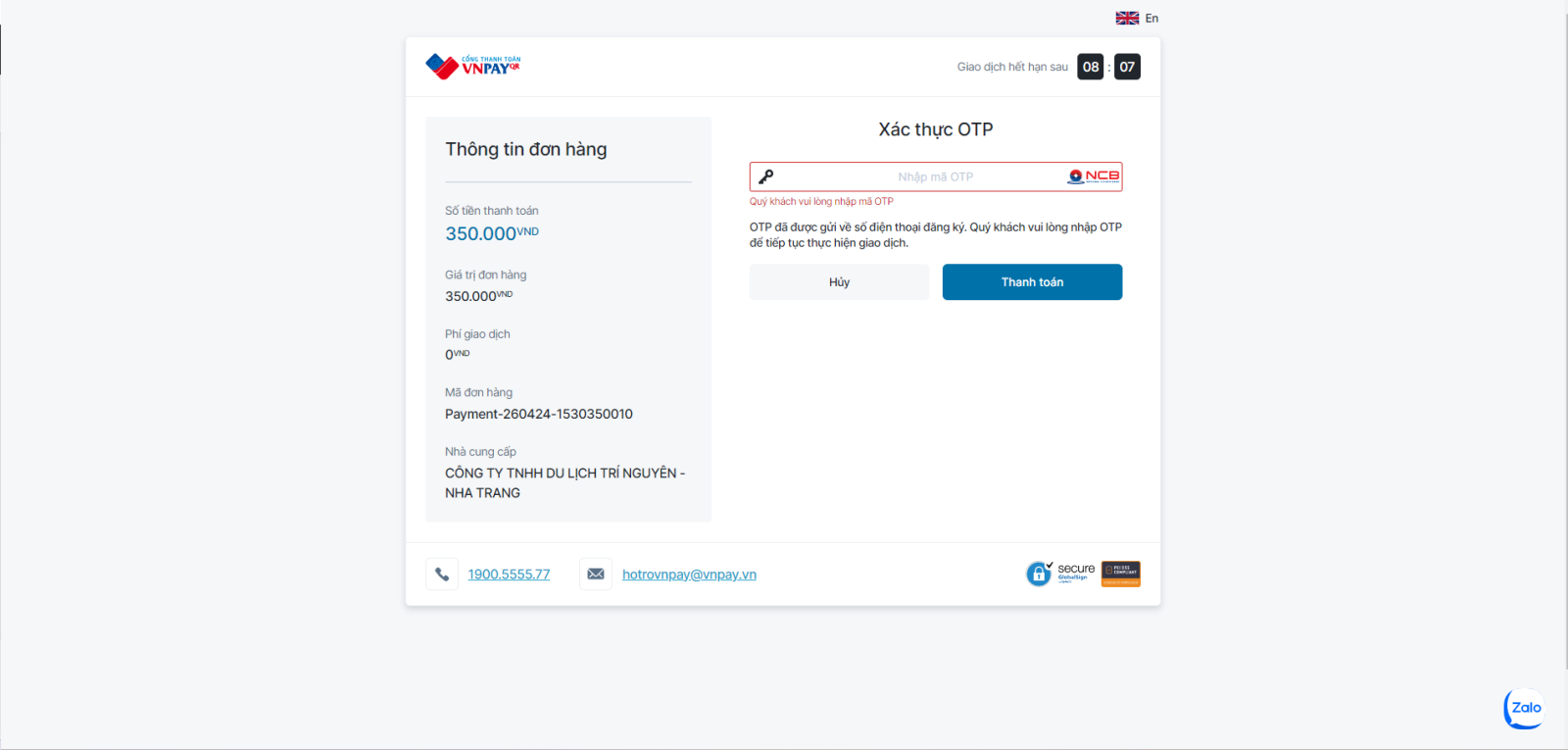 - Liên kết thanh toán chỉ tồn tại trong vòng 24h.